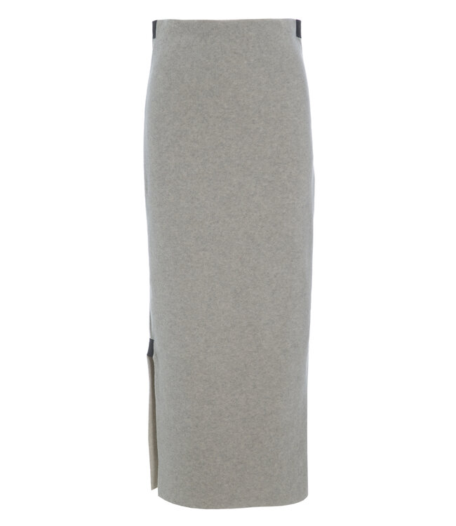 Met deze rok, gemaakt van de 'signature' fleece van Henriette Steffensen kun je alle kanten op. Je kunt hem hoog optrekken of juist wat lager op de taille dragen. De rok combineert uitzonderlijk goed met de high neck trui (1360) en de cardigan (7104) van Henriette Steffensen.