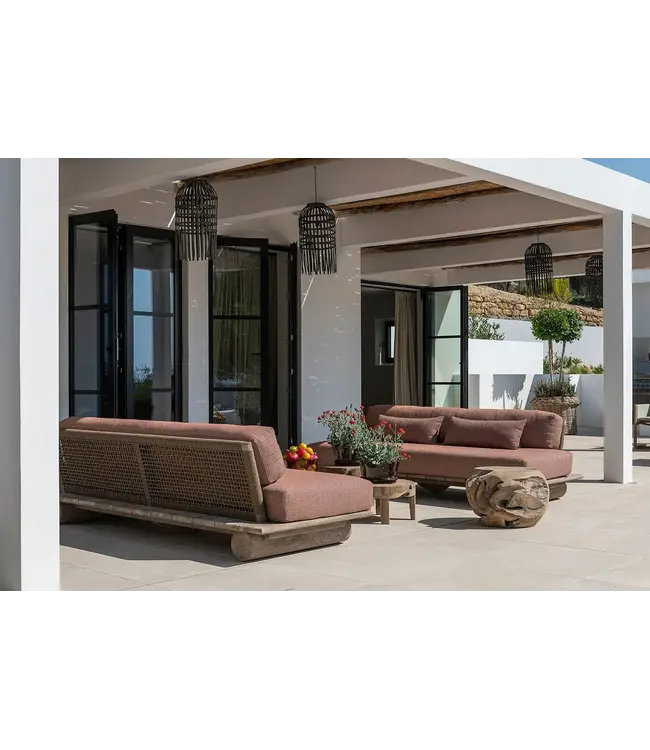 De Gommaire outdoor collectie is een mix van tijdloos en innovatief design in reclaimed teak, teakroot, PE wicker en gepoedercoat aluminium in een landelijk moderne stijl.