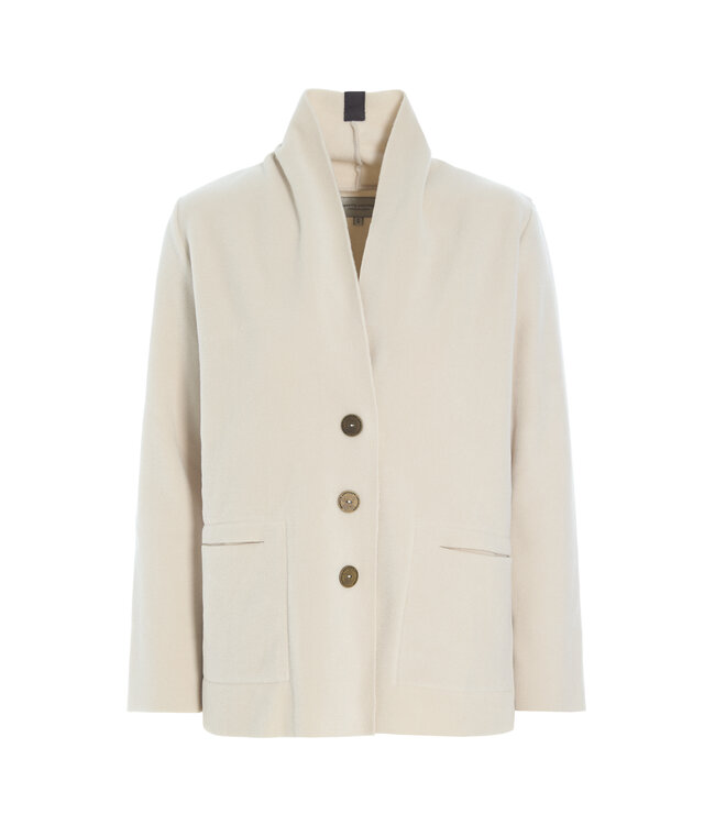 Kort vest met sjaalkraag, zakken en knoopsluiting. Perfect als licht item om laagjes mee te creëren!