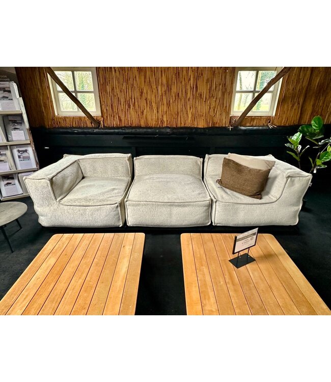 Beige kleurige Silky showroomset bestaande uit 2 corners en 1 single seat (midden element). Eventueel met antracietkleurige bases. Lees meer.
