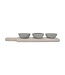 Houten snij/serveerplank (white wash) met 3 licht grijze kommetjes Lees meer.